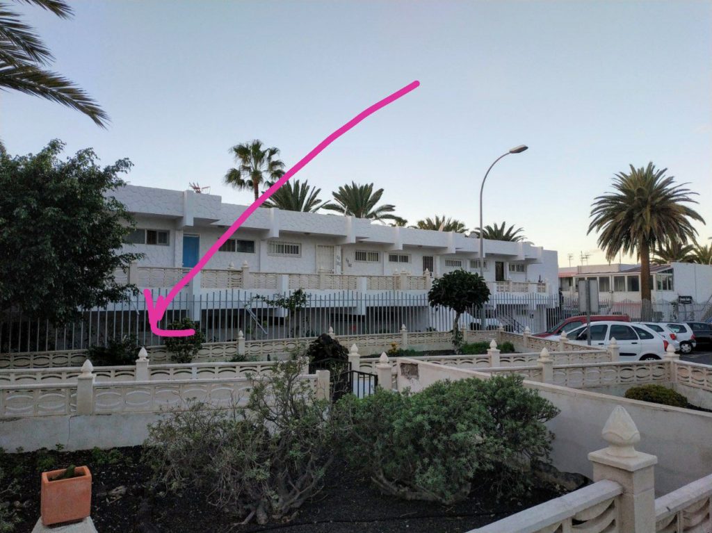 Unser Appartement befindet sich in einer eingezäunten Anlage „El Chaparral“, wo man ohne Schlüssel keinen Zugang zum Gelände hat, und auch nicht mehr rauskommt. Die gesamte Gegend in der wir wohnen besteht aus Anlagen verschiedener Güte und modernisierungsstand, unsere gehört tatsächlich nicht zu der schickesten, ein 70er Jahre Flair lässt sich nicht wegdiskutieren. Allerdings ist uns dann auch recht schnell positiv aufgefallen, dass die Bepflanzung wunderschön und gut gepflegt ist, und auch die Wege sauber gehalten werden. Die Appartements der gesamten Anlage gehören vielen verschiedenen Eigentümern, Menschen die dort leben, oder zur Vermietung für Urlauber. Es handelt sich also nicht um ein reines Feriendorf. An ein paar Fenstern konnten wir Verkaufschilder entdecken, eine Einheit wird für ca. 75.000 Euro angeboten. Viel bekommt man dafür aber nicht, es fühlt sich vom Platz her schon eher nach ausgebauter Schuhschachtel oder Container an.