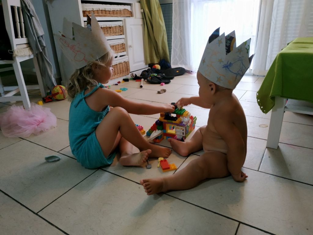 Letztes Wochenende haben wir den ersten Geburtstag von Stella gefeiert. Den Kuchen hatten wir zweimal (natürlich total uneigennützig) im Vorfeld geübt und waren somit in der Lage am Geburtstagsmorgen einen schönen Kuchen in Herzform mit Schokoglasur und bunten Smarties präsentieren zu können. Eine Kerze konnten wir im Sammelsurium der Wohnung auch auftreiben. Dazu haben wir eine Geburtstagskrone für Stella und Luna gebastelt. Geburtstagsstimmung hatten wir somit auf jeden Fall hergestellt! Ein besonders schöner Anblick waren am Nachmittag die beiden Kinder mit nichts als ihren Kronen bekleidet am Strand im Sand sitzend. Leider hatten wir kein Handy dabei um den Moment festzuhalten. Stella will nun auch, da sie kein Baby mehr ist, nicht mehr unbedingt immer im Tragetuch bleiben, sondern selbst laufen. Zu meiner großen Freude am liebsten auch auf der Mauer, so wie ihre große Schwester.
